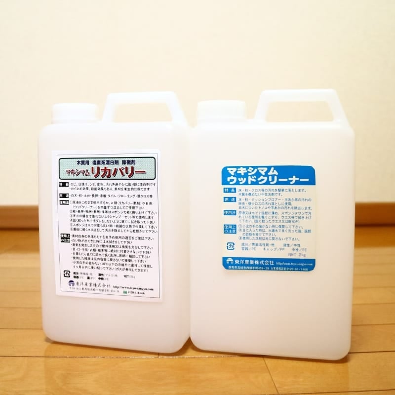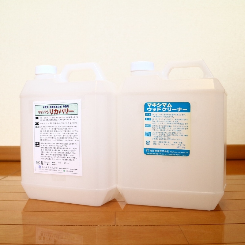 - 「ウッドクリーナー」は長期保存は可能ですが、「リカバリー」は保存ができません。20℃以下の冷暗所(冷蔵庫が最適)に密栓して保管し、商品受領後6か月以内に使い切って下さい。特に夏場等の高温になると容器が膨張し破裂する場合があり大変危険ですので、商品受領後6か月を過ぎた製品は開封未開封に限らず処分して下さい。尚、破棄する場合は十分な流水で流せば浄化槽等は痛めません。